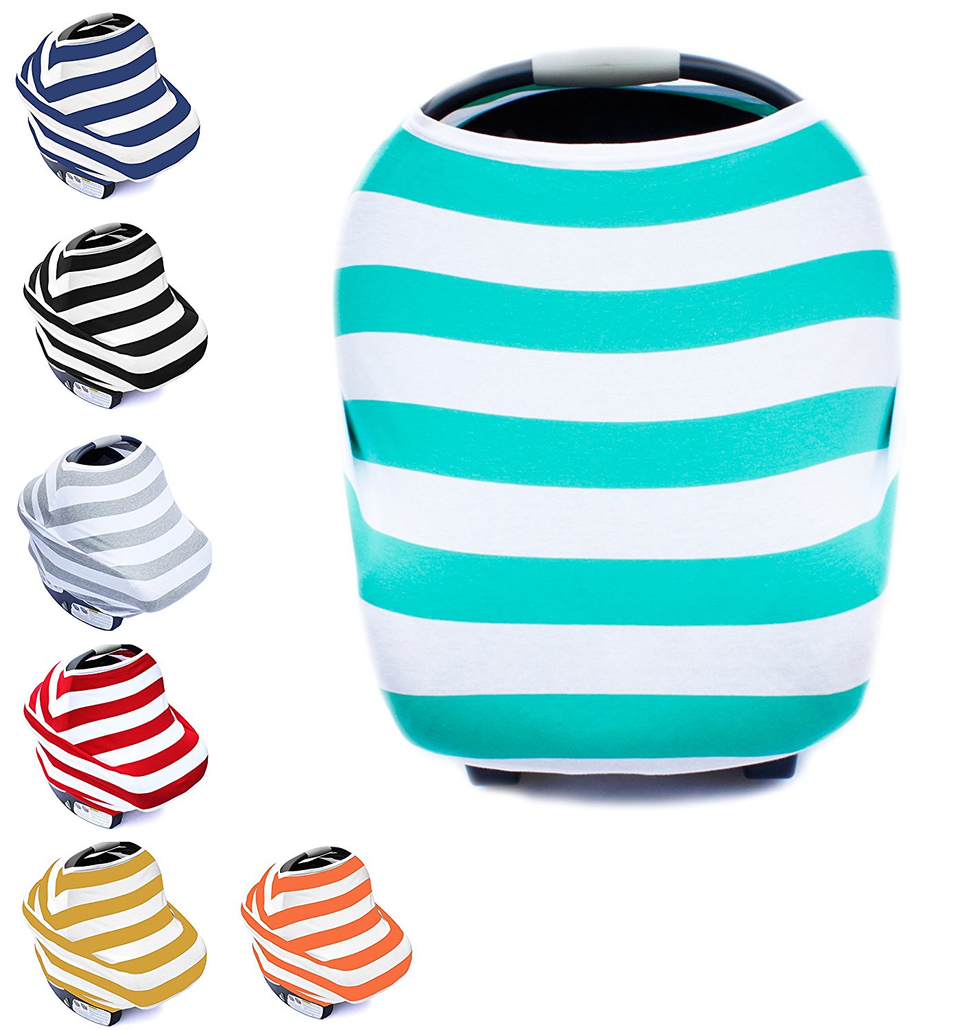 Infant baby car seat canopy, nursing cover, shopping cart cover, high chair cover, infinity breastfeeding scarf. The stretchy cover will cover practically everything for baby! The draw bag will keep your cover neatly inside, or use it for diapers, and other essentials!